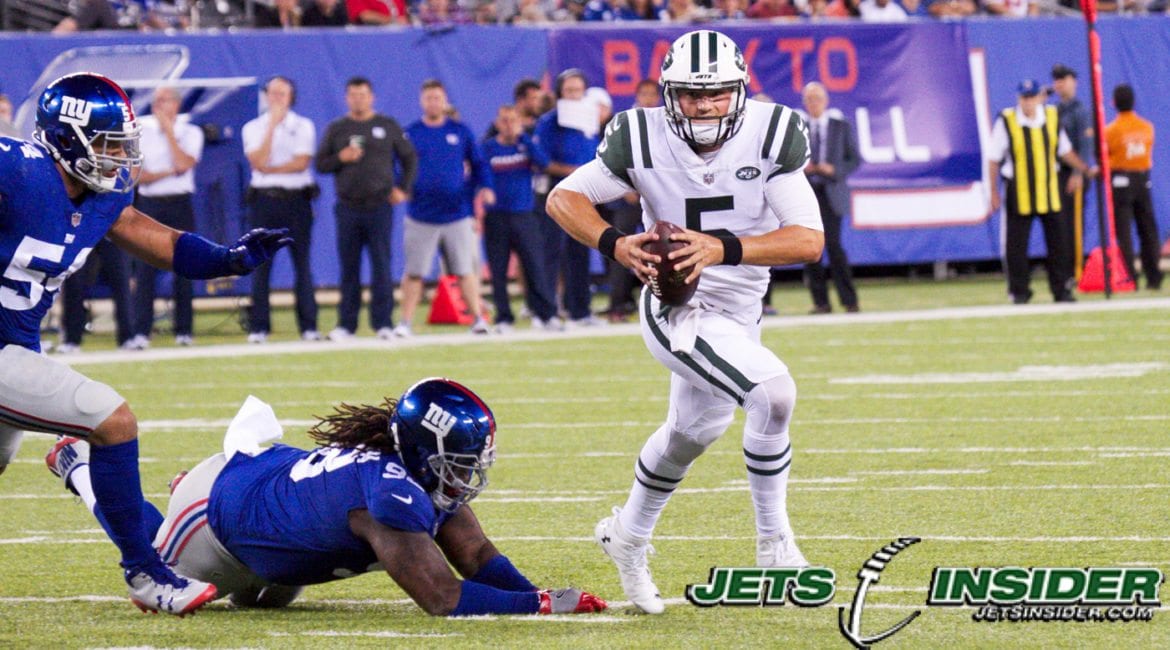 In more ways than one, the Jets beat themselves more than the Giants did. With the Giants ahead 5-0 in the first quarter, Hackenberg rolled right from scrimmage, stared at Eric Tomlinson and was intercepted by Landon Collins and taken back for a touchdown.