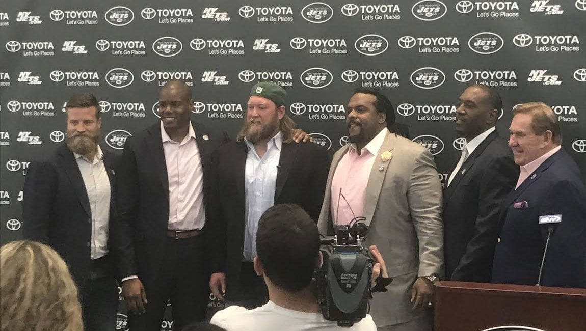 Mangold had his family in attendance, extended family as well, Christopher Johnson, Mike Maccagnan and Todd Bowles were there as well as were some former teammates, Ferguson, Brandon Moore, Willie Colon and Ryan Fitzpatrick. There was a highlight clip, Johnson giving a speech talking about how much Mangold meant to him and this franchise, “How lucky am I? How lucky am I? But part of what makes me a lucky man is being here, today, with you,” Johnson said. “Welcome everyone, today we are here to celebrate the career of the all-time great New York Jets, Nick Mangold. As you can see by the people in attendance this man is loved by his family, his teammates and this entire organization, and me.”