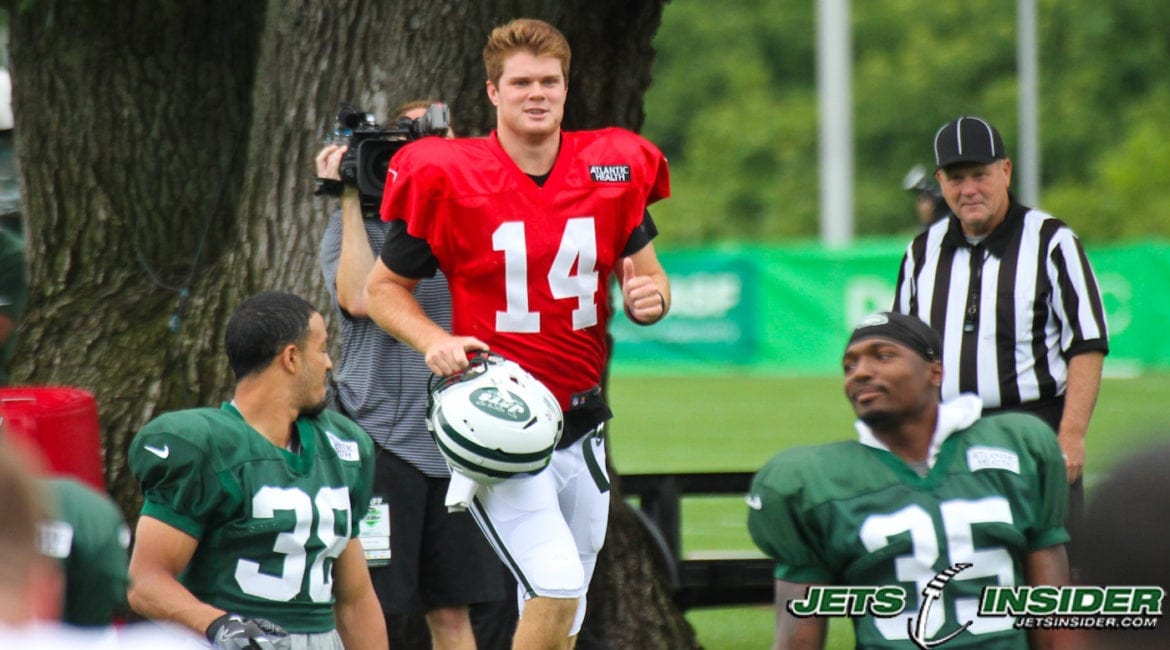 FLORHAM PARK, NJ – For the first three days of training camp the biggest story was the absence of the rookie quarterback, Sam Darnold. On the fourth day the story finally turns back to what he does on the field.
